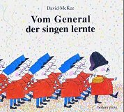 Jugend-literaturpreisträger David McKee auf ein ganzes Bilderbuch aus. Sein General will auch das letzte kleine Land noch erobern, aber dort gibt es keine Waffen. Die Menschen laden die Soldaten einfach ein, mit ihnen zu leben – zu lachen, zu essen und zu spielen (Hüppekästchen!). Die einfache Rechnung geht auf: Selbst der General gelangt am Ende zu ein wenig Einsicht. McKee kleidet seine Friedensbotschaft in einfache Worte mit vielen Anspielungen und zeichnet dazu ein fröhliches Rotfrack-Heer. Für jedes Alter! |